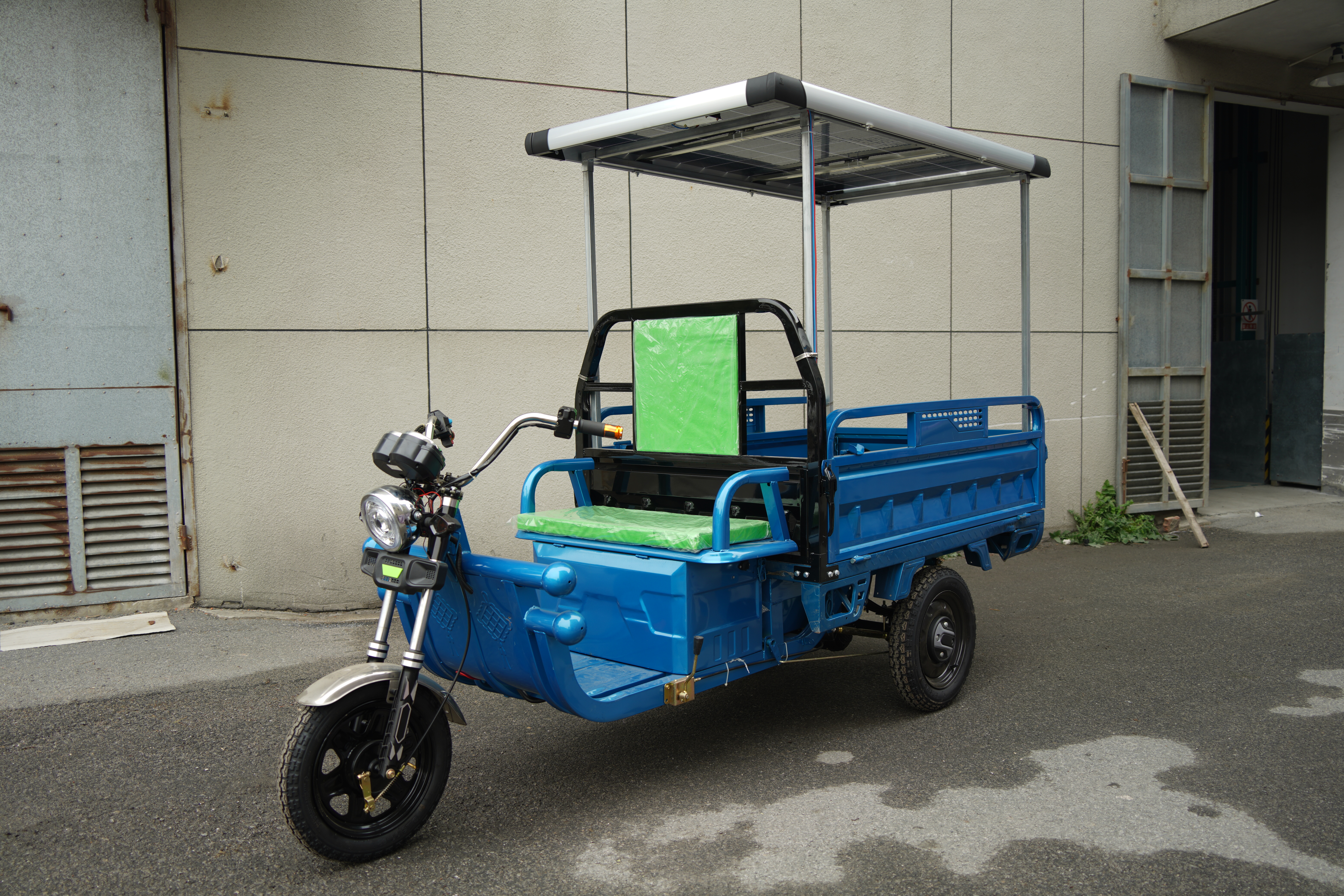 The effect after installation is as shown in the figure below. Solar panels In recent years, due to lack of energy, in response to the call for new energy sources, we can install solar panels on tricycles, which is very practical. Certificate Regarding certificates, our electric tricycles have ISO9001, CE certificates, and some products have EEC certificates.
