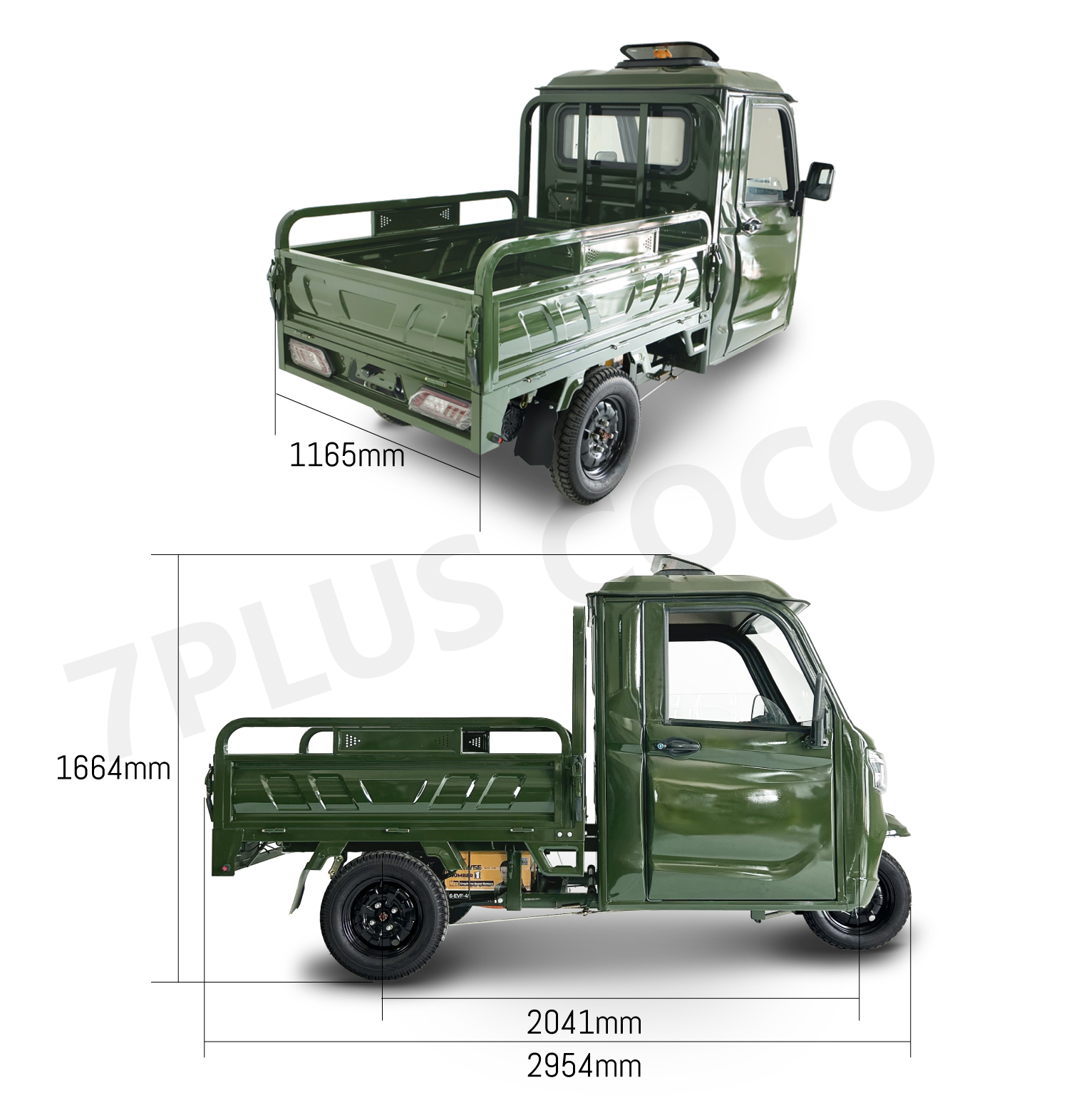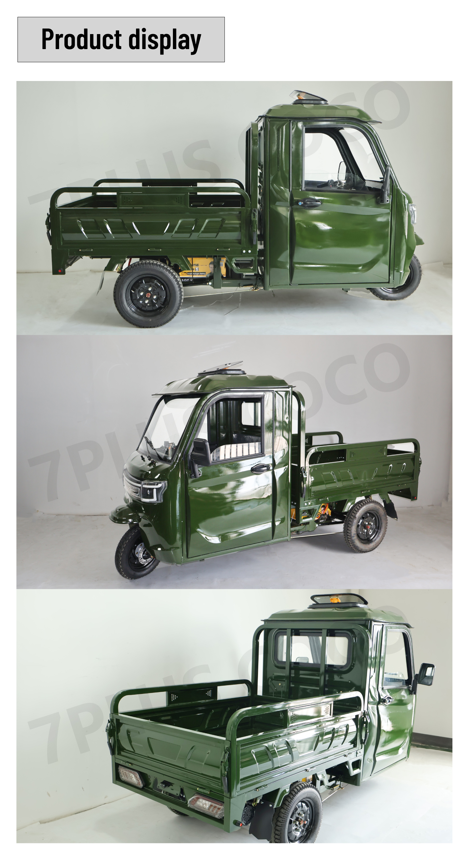 This tricycle is equipped with a powerful 3000W motor, enabling it to handle various terrains and loads with ease. The scooter frame is made of a combination of stainless steel and ABS, ensuring durability and strength. The front and rear suspension system provides a smooth ride, absorbing shocks and bumps on the road. It uses lead-acid batteries with rated capacities of 60V20AH/60V32AH/60V45AH, offering flexibility in power options. With an AC input of AC110 - 220V 50Hz, it can be charged conveniently in 6 - 8 hours. The tire specifications are F:3.75 - 12/R:4.00 - 12, and the pneumatic tires enhance traction and stability. It has an impressive climbing ability of 25 degrees, making it suitable for hilly areas. The carton size of 300*110*85cm ensures easy transportation and storage. With a maximum speed of 45km/h and a mileage range of 40km - 45km, it can meet daily commuting and light cargo transportation needs. The weight of the vehicle is 185kg, and it can carry a maximum load of 900 - 1000kg, making it a reliable workhorse for various applications. It comes with certifications such as EEC, CE, RoHS, and ISO9001, guaranteeing quality and compliance with international standards.